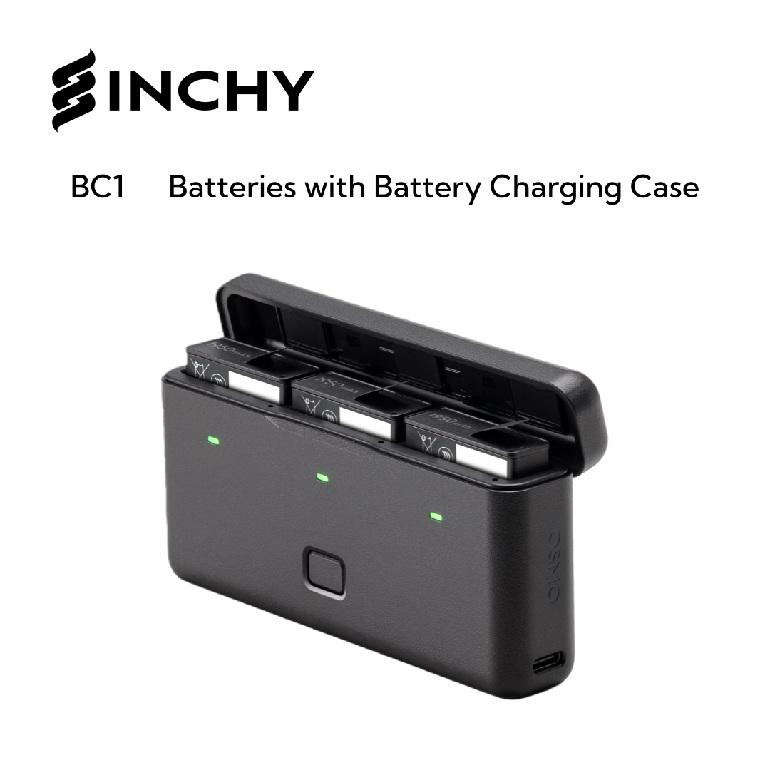 INCHY BC1 Batteries with Battery Charging Case, Compatible with DJI Osmo Action 3/4, Hero 12 and Mobile Devices