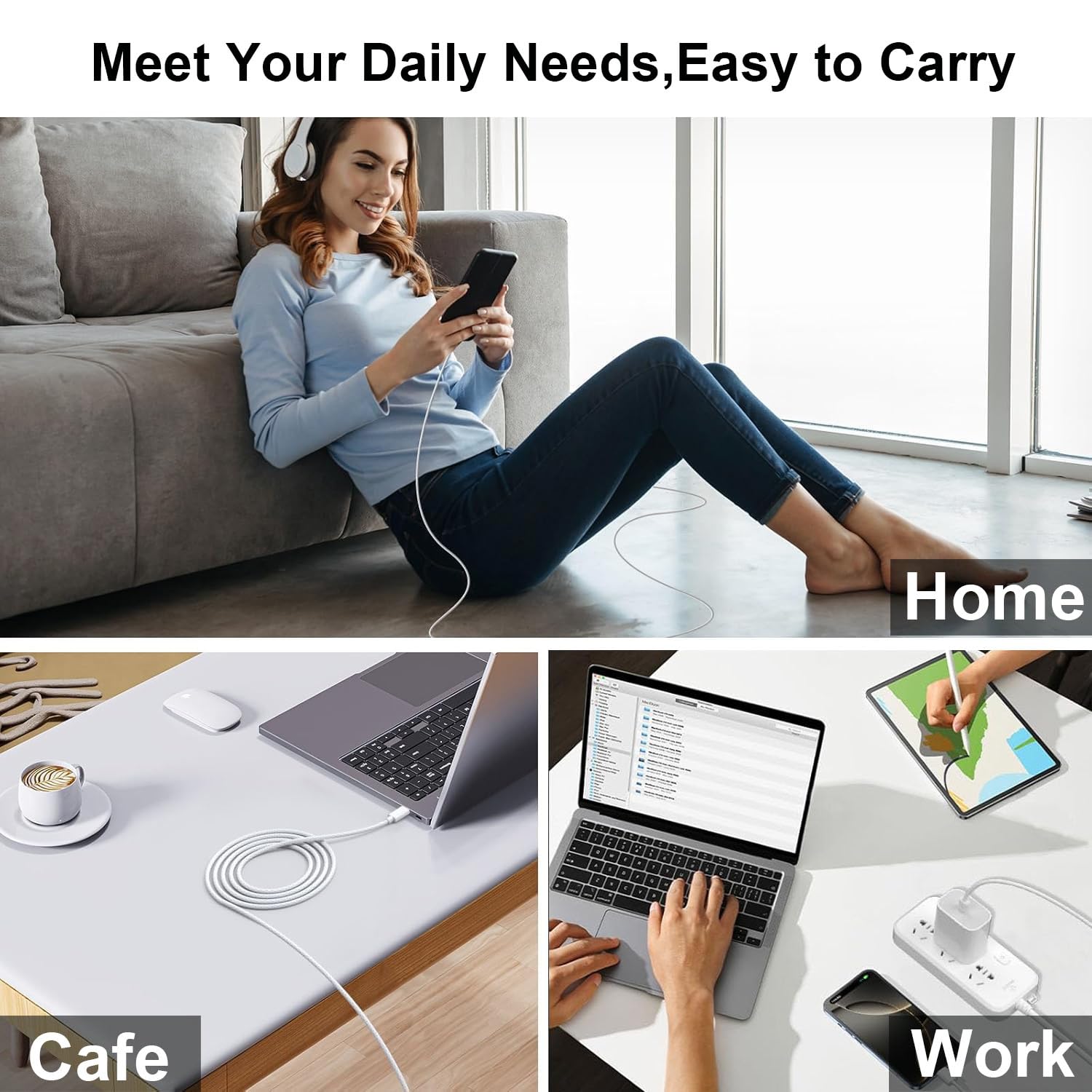 Lightweight, stylish, compact and small wall charger won’t take up any other place on the wall socket, plug and play. It is the best choice for your business trip, travel, office and home.